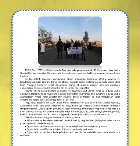 19-25 Ocak 2025 tarihleri arasında Prag şehrinde gerçekleşen KA121 Erasmus+ İşbaşı İzlem