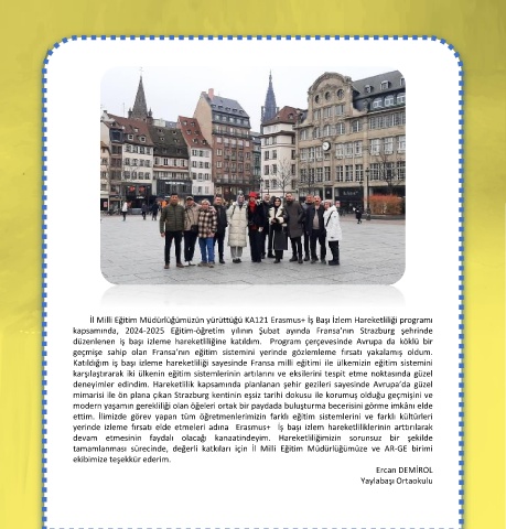 kapsamında, 2024-2025 Eğitim-öğretim yılının Şubat ayında Fransa’nın Strazburg şehrinde