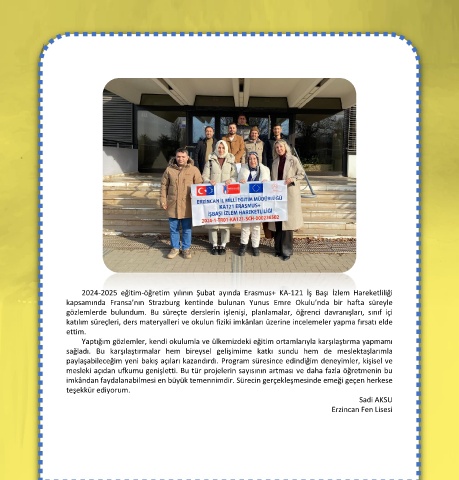 2024-2025 eğitim-öğretim yılının Şubat ayında Erasmus+ KA-121 İş Başı İzlem Hareketliliği