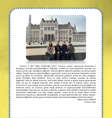 Erzincan İl Milli Eğitim Müdürlüğü KA121 Erasmus+ projesi kapsamında Macaristan’ın