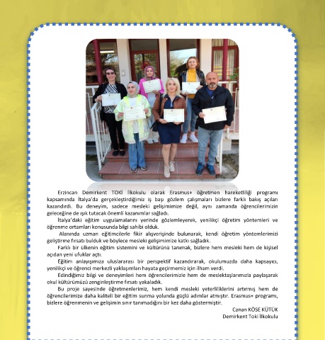 Erzincan Demirkent TOKİ İlkokulu olarak Erasmus+ öğretmen hareketliliği programı
