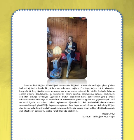 faaliyeti eğitsel anlamda birçok kazanım edinmemi sağladı. Portfolyo, öğrenci ürün dosyaları,