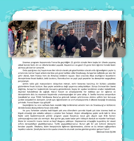 Geçirdiğimiz bu süre zarfında hem mesleki bilgi birikimimizi artırdık hem de Strasbourg’un kültürünü