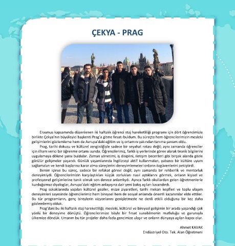birlikte Çekya’nın büyüleyici başkenti Prag’a gitme fırsatı buldum. Bu süreçte hem öğrencilerimizin mesleki