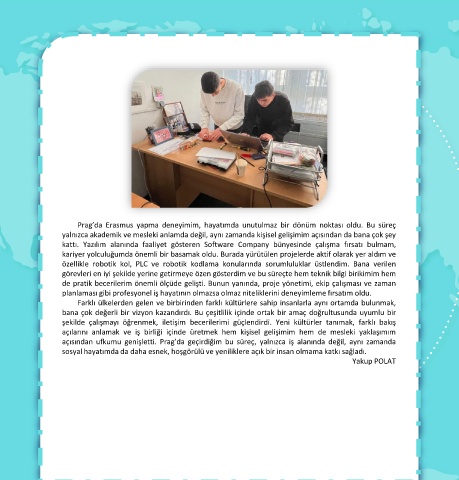 özellikle robotik kol, PLC ve robotik kodlama konularında sorumluluklar üstlendim. Bana verilen