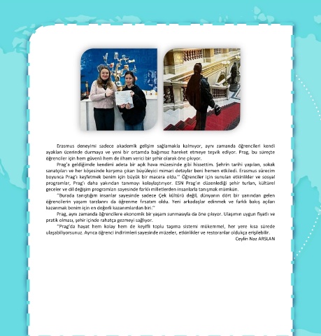 boyunca Prag’ı keşfetmek benim için büyük bir macera oldu.’’ Öğrenciler için sunulan etkinlikler ve sosyal