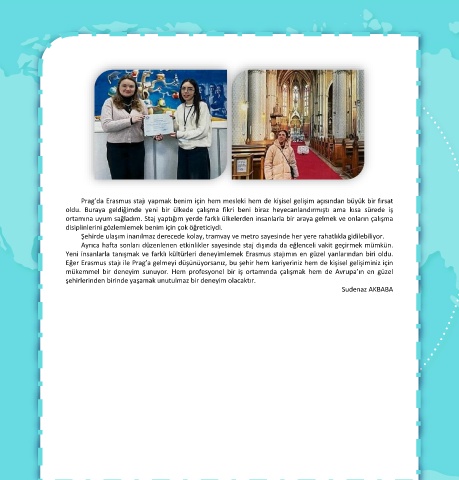 Prag’da Erasmus stajı yapmak benim için hem mesleki hem de kişisel gelişim açısından büyük bir fırsat