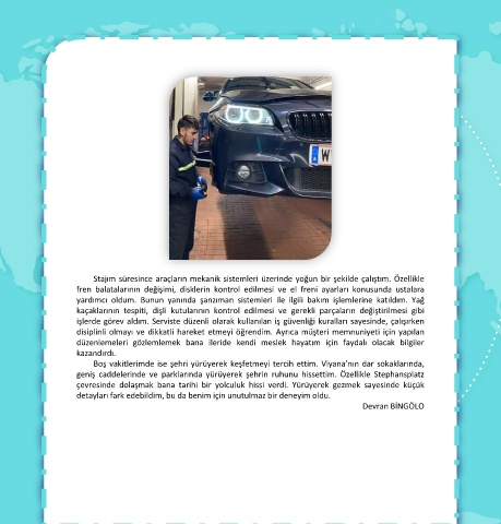 yardımcı oldum. Bunun yanında şanzıman sistemleri ile ilgili bakım işlemlerine katıldım. Yağ