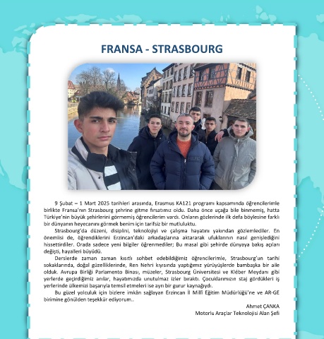 9 Şubat – 1 Mart 2025 tarihleri arasında, Erasmus KA121 programı kapsamında öğrencilerimle