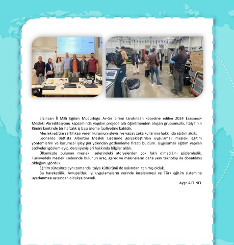 Erzincan İl Milli Eğitim Müdürlüğü Ar-Ge birimi tarafından koordine edilen 2024 Erasmus+