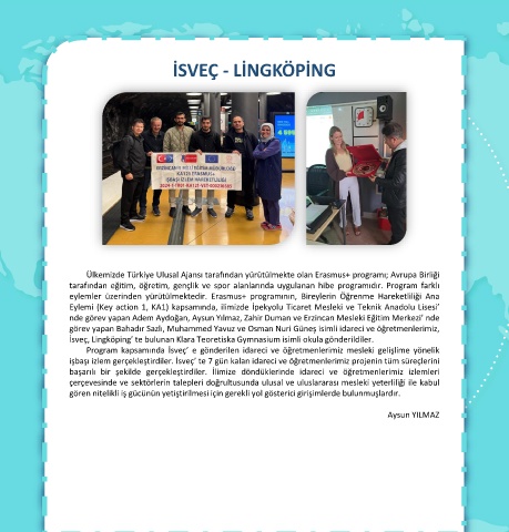 Program kapsamında İsveç’ e gönderilen idareci ve öğretmenlerimiz mesleki gelişlime yönelik