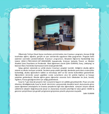 Anadolu Lisesi Pazarlama ve Perakende Alanı öğretmeni olarak (Zahir DUMAN), İsveç, Linköping’ te